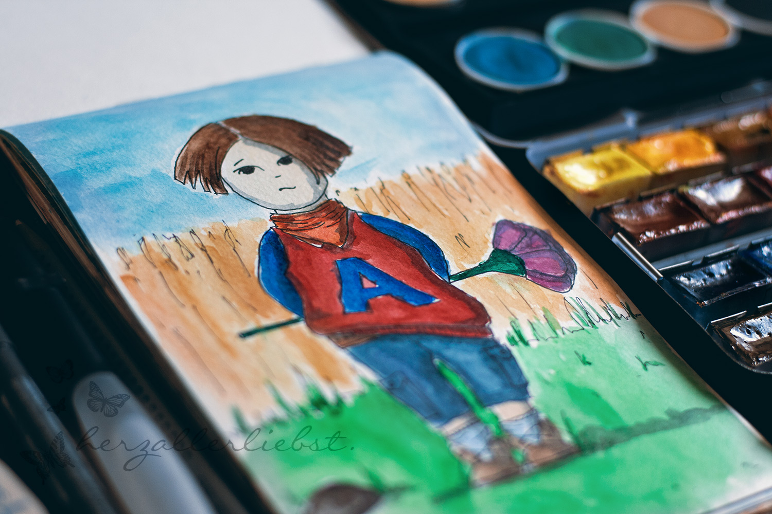 Junge, du brauchst ’nen vernüftigen Haarschnitt! Das dritte Kind in meinem Skizzenbuch und jetzt kann ich es wirklich eine Serie nennen. Ich würde mich nicht wundern, wenn noch mehr folgen werden.